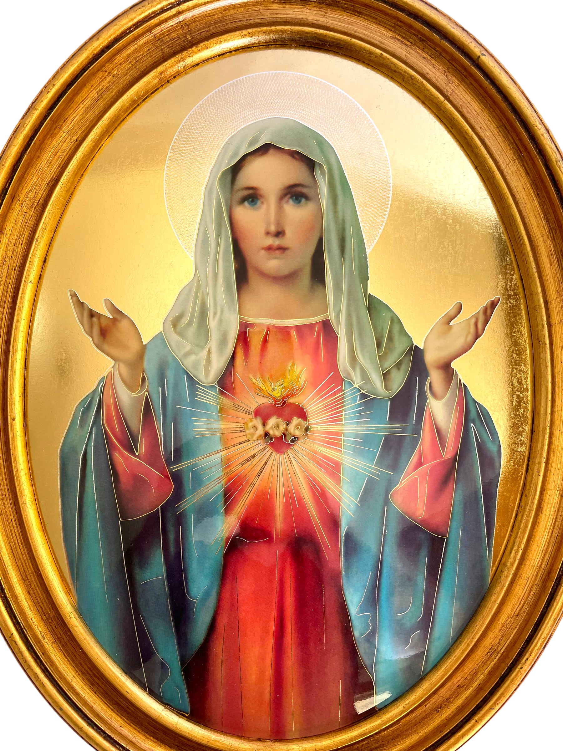 OVALO GRANDE INMACULADO CORAZÓN DE MARÍA HOJA DE ORO ITALIANO